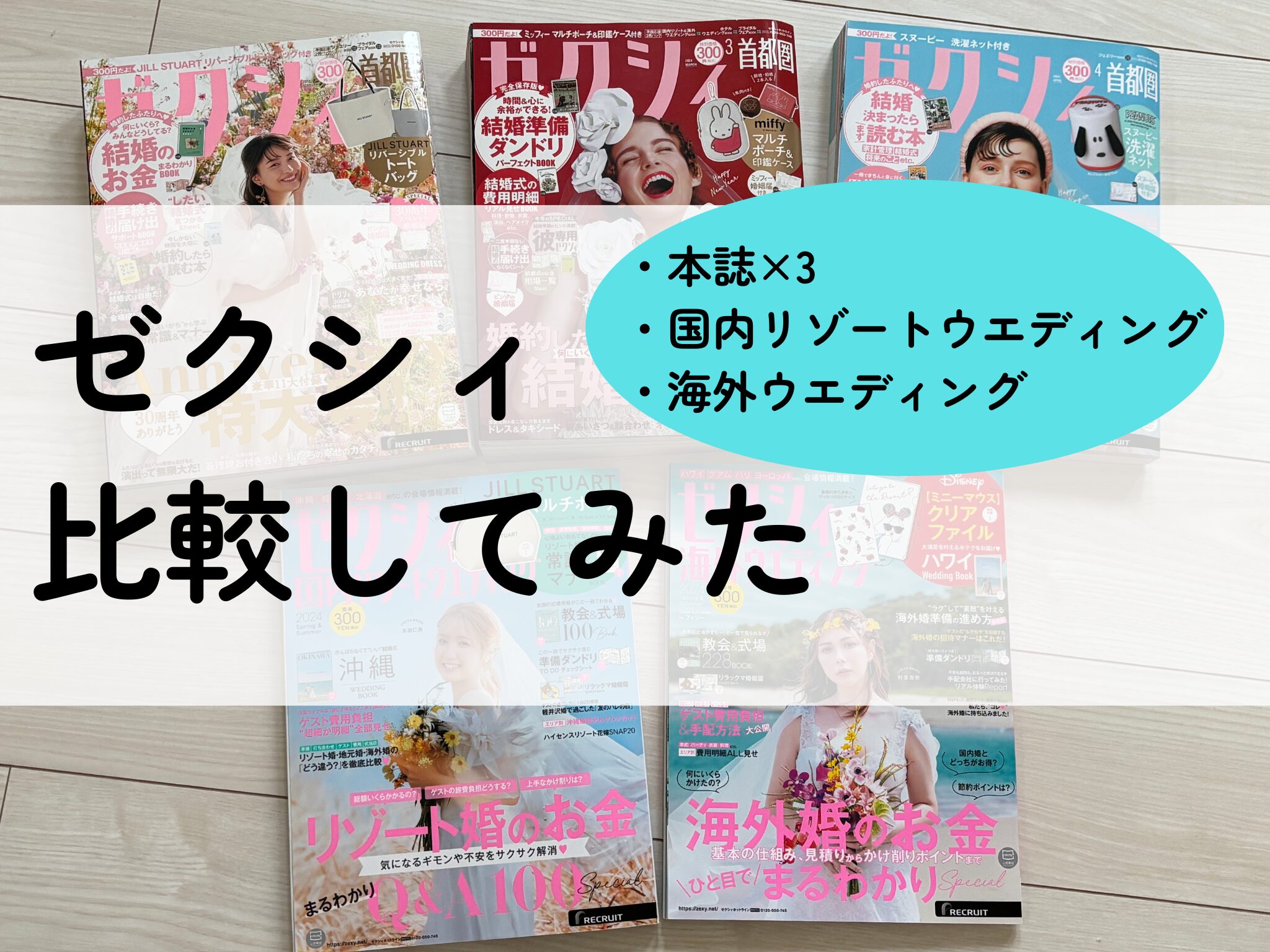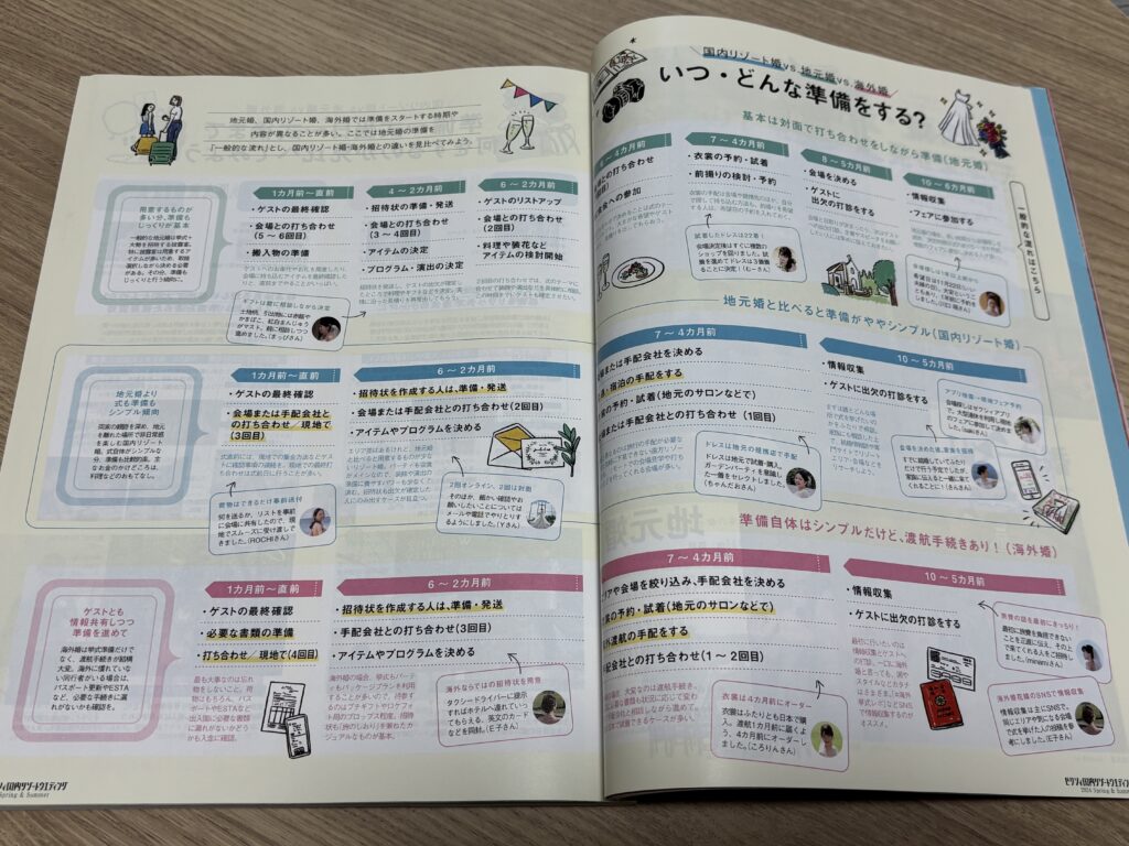 本誌の月ごとの内容の違いや、国内リゾート・海外ウェディング専門の別冊についても比較します。