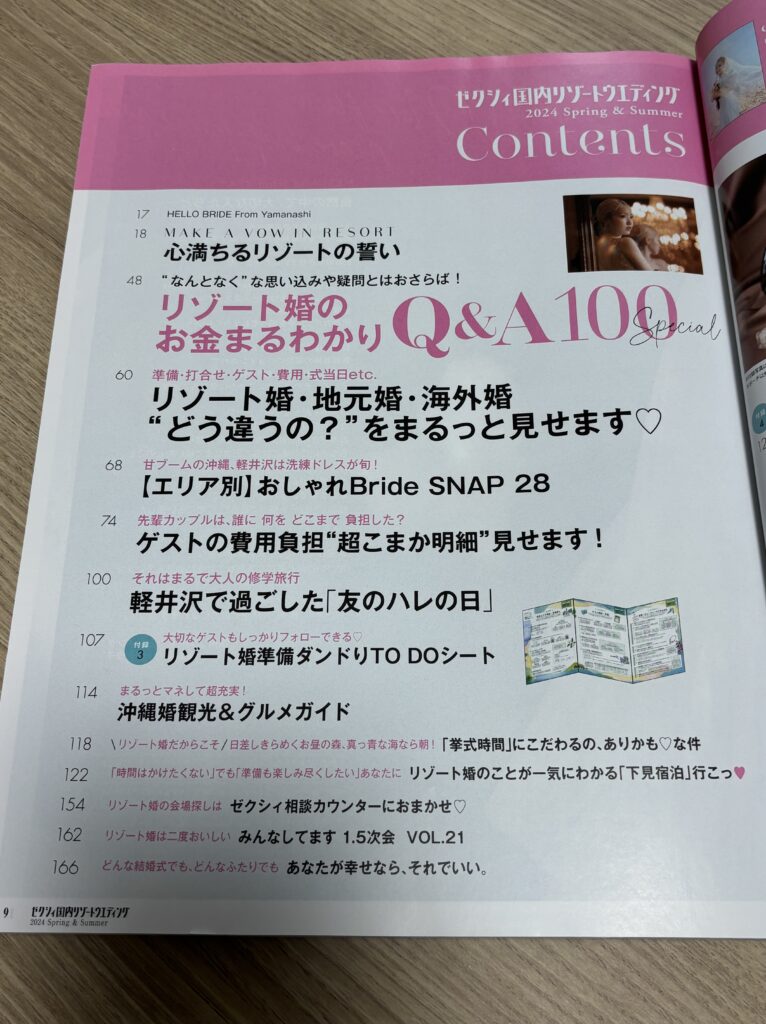 「ゼクシィ海外ウェディング」は「ゼクシィ」「ゼクシィ国内リゾートウェディング」とは誌面構成が異なっていました。
