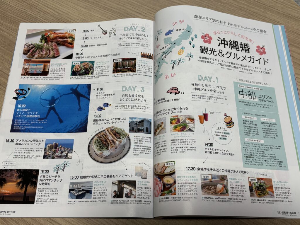 あと、「沖縄婚 観光&グルメガイド」なんて記事もあったりして、普通に観光情報として読めます。