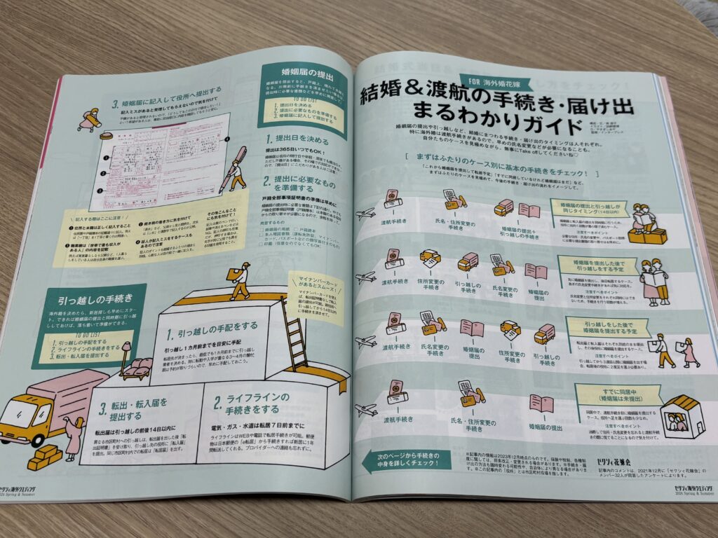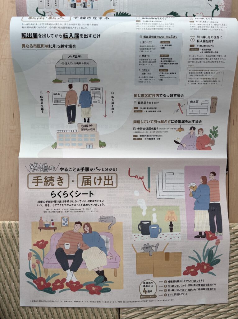 婚姻届の提出と引越しのタイミングによって変わる手続きの順番がまとまっていたり、結婚と同時に扶養に入る・転職する場合のそれぞれの手続きの仕方など、さまざまなケースをカバーしています。