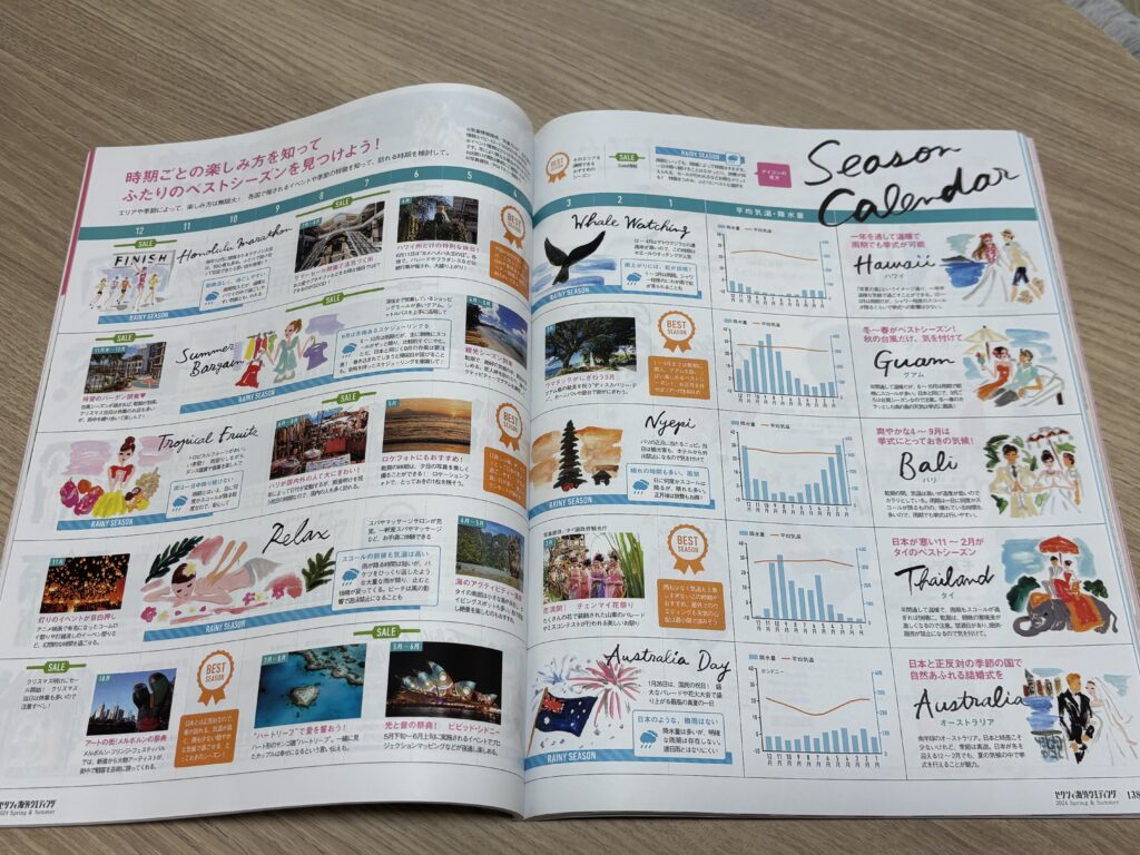 海外婚ならではの情報(旅費やホテル手配、エリアごとのベストシーズン等)が得られるので、検討している方には有益だといえそうです。