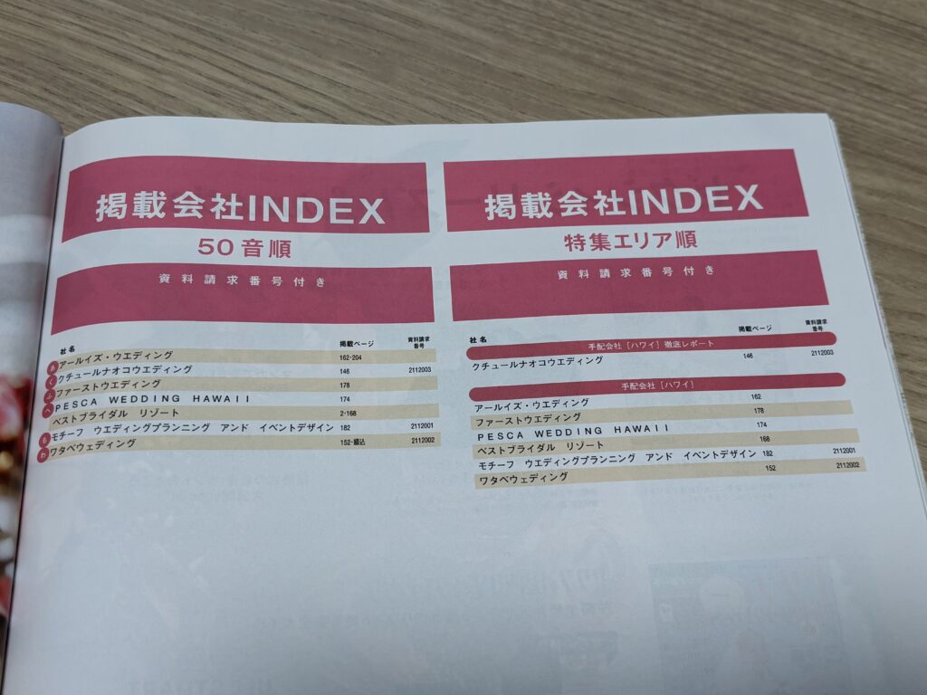 後半の式場カタログページは半分以下で、すべてハワイ。