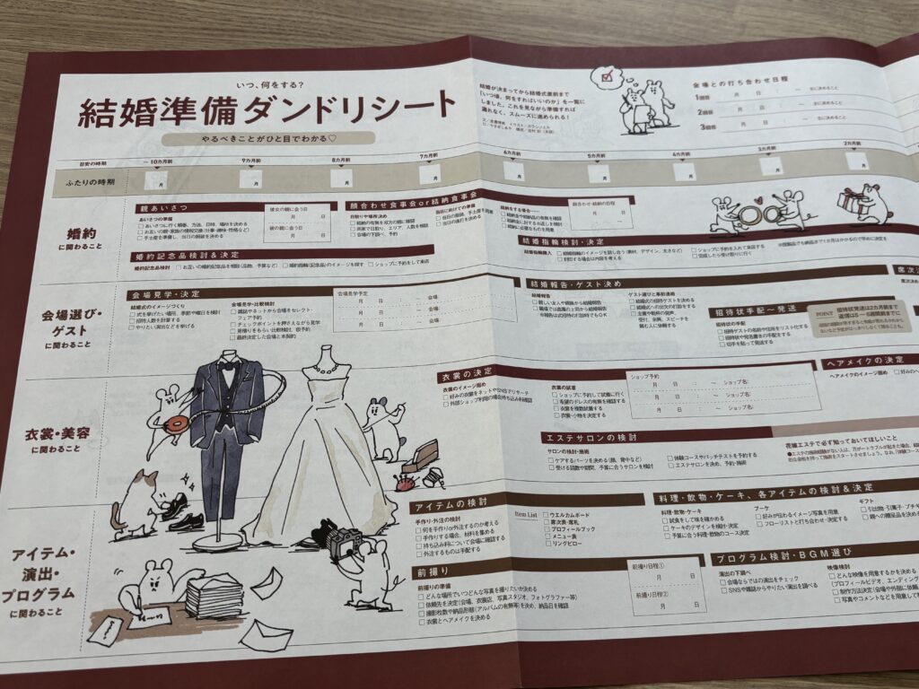 式を挙げるカップルなら同じ理由で結婚準備ダンドリシートや相場一覧シートも使えるかも。