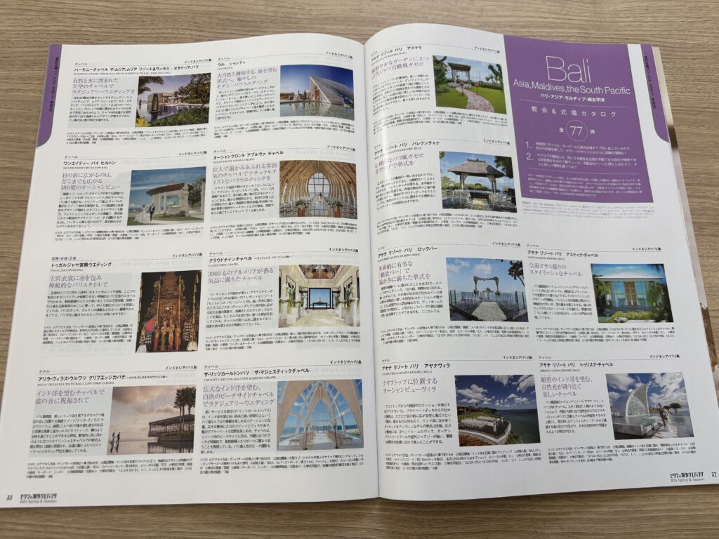 結婚式を挙げない人でも、各リゾート地の雰囲気を誌面から感じられるので、新婚旅行の行き先を検討したり、フォトウェディングのロケーションをイメージしたりするのに使えます。
